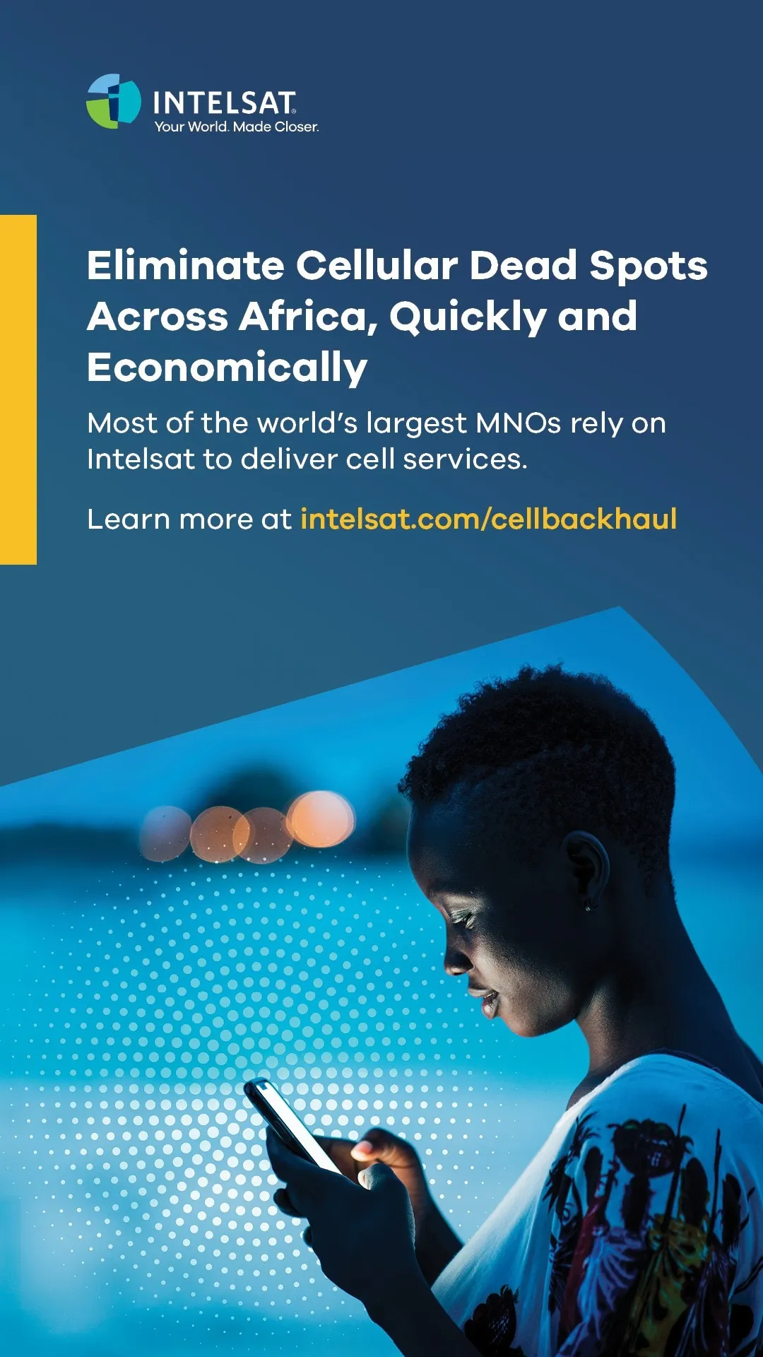 Intelsat began by defining and delivering solutions that shape the way we connect with each other. We're still at the forefront of innovation, showing every day that when you push innovation forward, you bring your business, your customers, and the world closer.